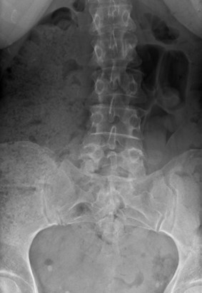 This patient was sent for plain film X-ray of the lumbopelvic spine.